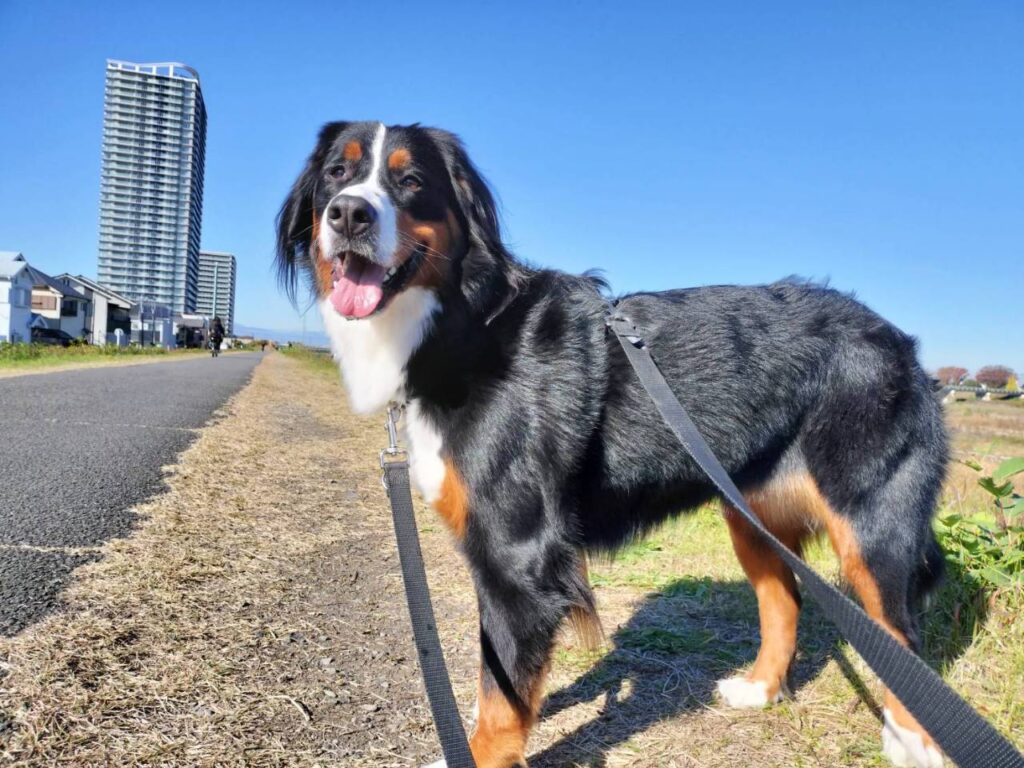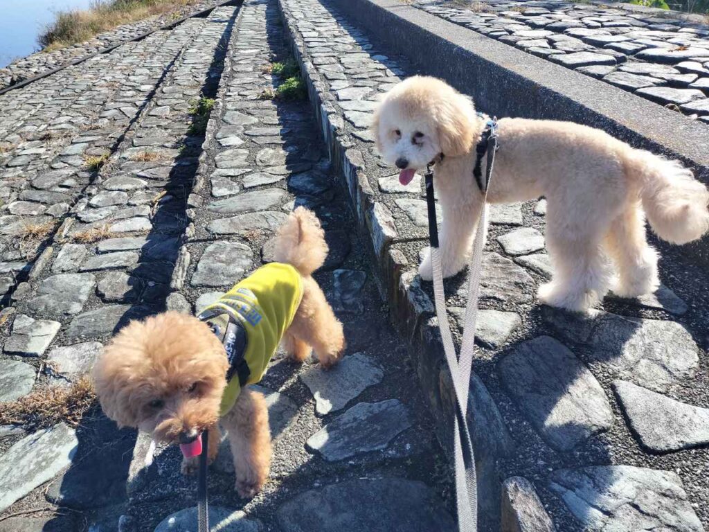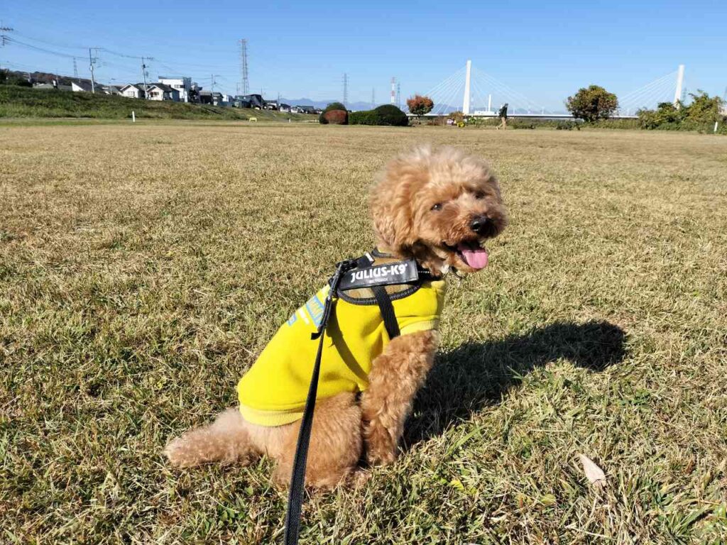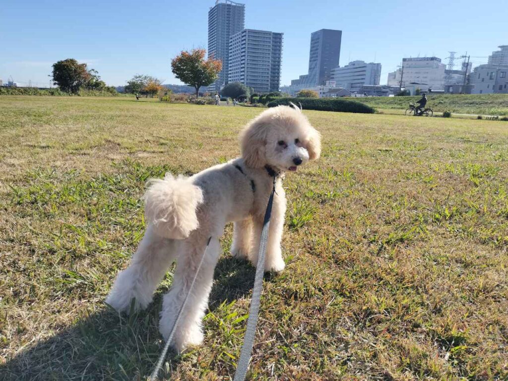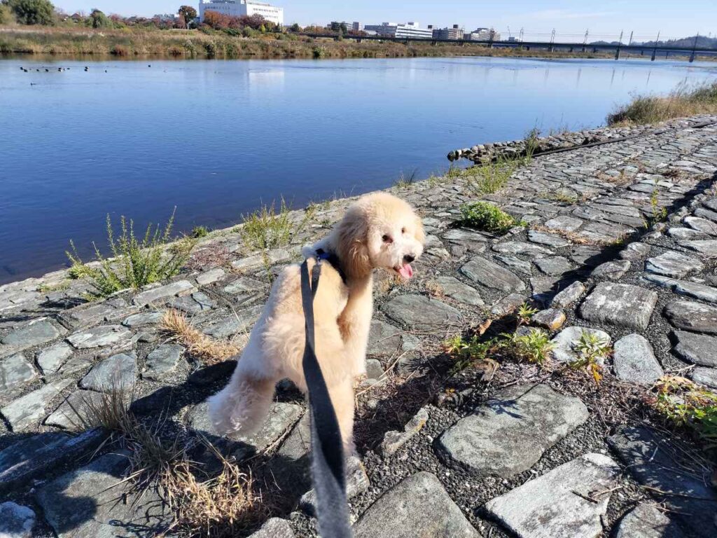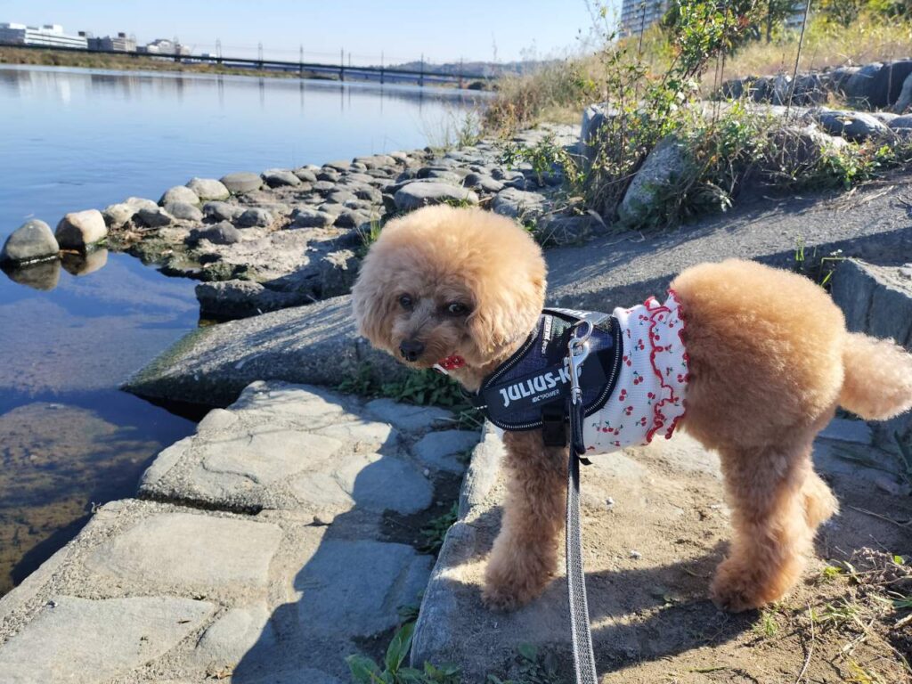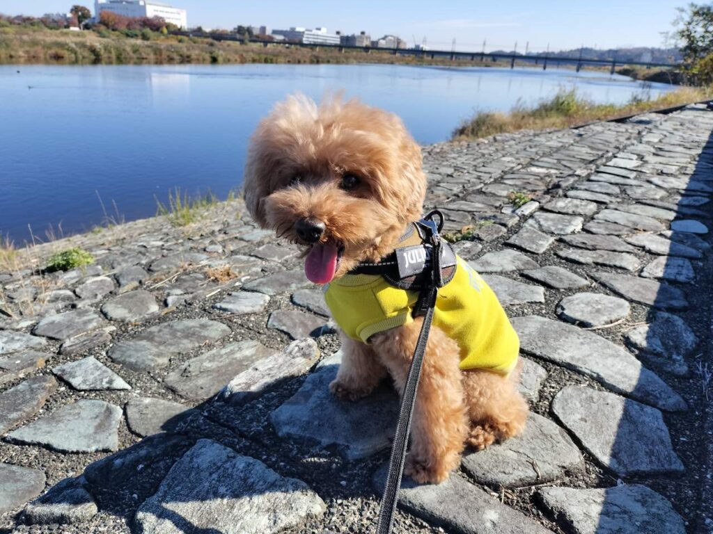 苺ちゃん🍓と一緒に多摩川までお散歩に行きました♪