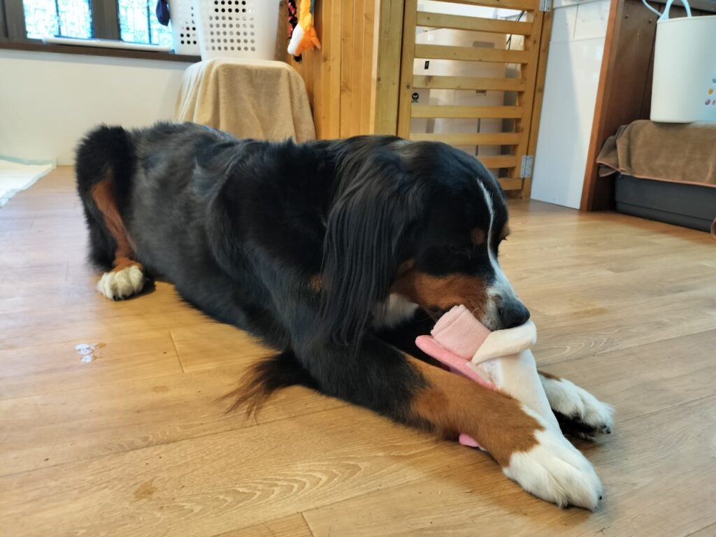 今日の保育園は、バーニーズマウンテンドッグのあずきちゃん💛