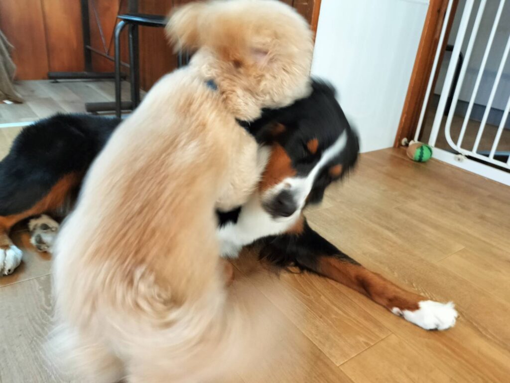 今日の保育園は、バーニーズマウンテンドッグのあずきちゃん💛