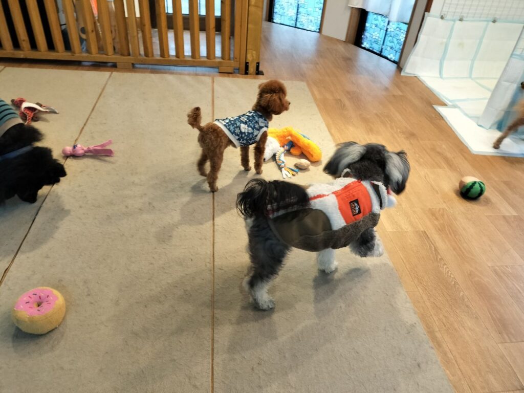 トイプードルのりく君♪マルプーのコタロー君♪Mシュナウザーのもん太君♪ 犬の保育園BLOG 2026.02.11 今日2月11日は「建国記念の日」です!建国された日ではなく建国されている事自体を祝いましょう、というニュアンス?だそうです。。祝日ですが本日は通常営業となっております(;^_^A 今日の保育園は、トイプードルのりく君♪ 外は雨が降っているので室内で遊びました♪ ノーズワークフードサーチをしました♪ マルプーのコタロー君♪ Mシュナウザーのもん太君♪