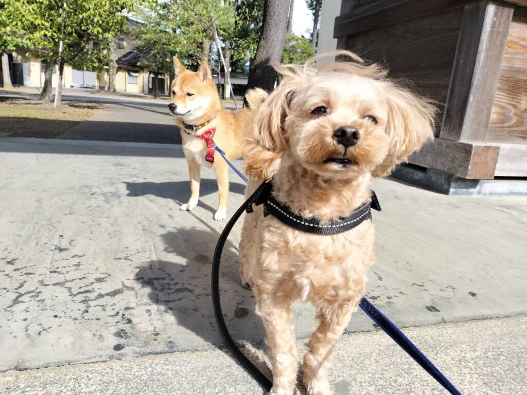 多摩川までお散歩に行きましたが風が強くて耳がなびいています(;^_^A