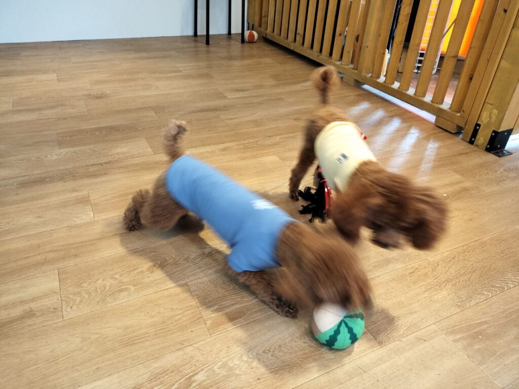 ラテ君と二人になってしまったのですが元気に遊んでいました♪