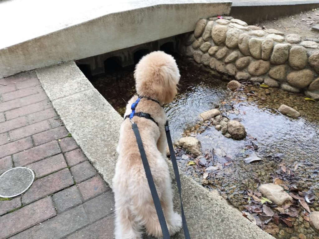 まだお散歩練習中のラン君、色々なものが気になります・・・