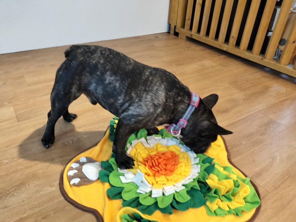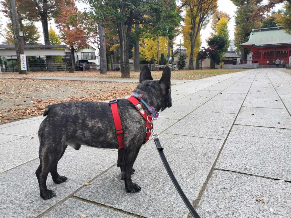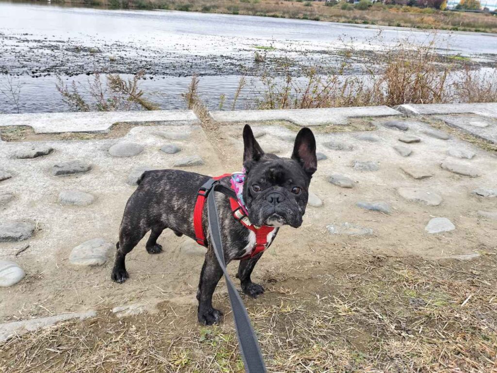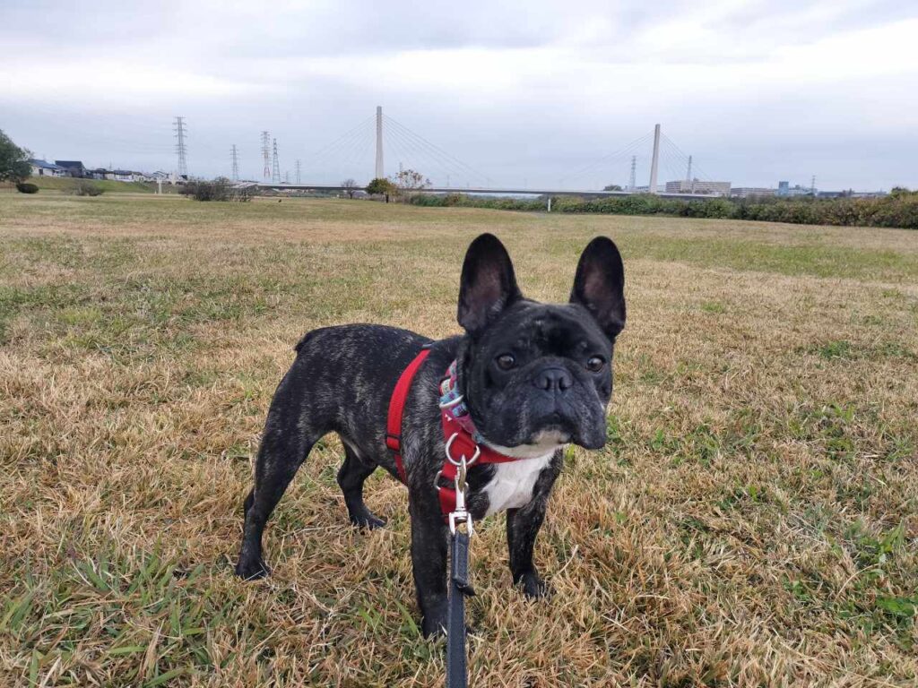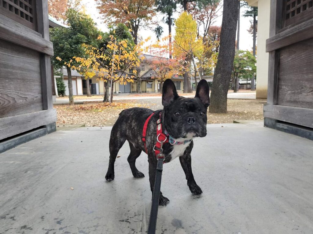 フレンチブルドッグのソル君♪ 犬の保育園BLOG 2025.11.25 昨日までは良いお天気でしたが今日は雨の予報。。。早朝、東の空が真っ赤な朝焼けでした・・・あんな見事な朝焼けもそうそう見ないかなと思いました(;^_^A 今日の保育園は、フレンチブルドッグのソル君♪ 小野神社の銀杏が黄色になってきました♪ 雨が降る前に多摩川までお散歩に行きました♪ ノーズワークマットや 知育玩具で遊びました♪