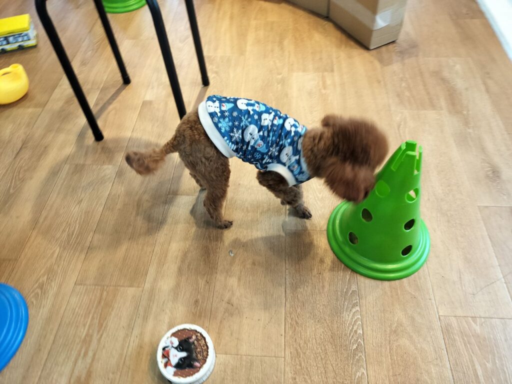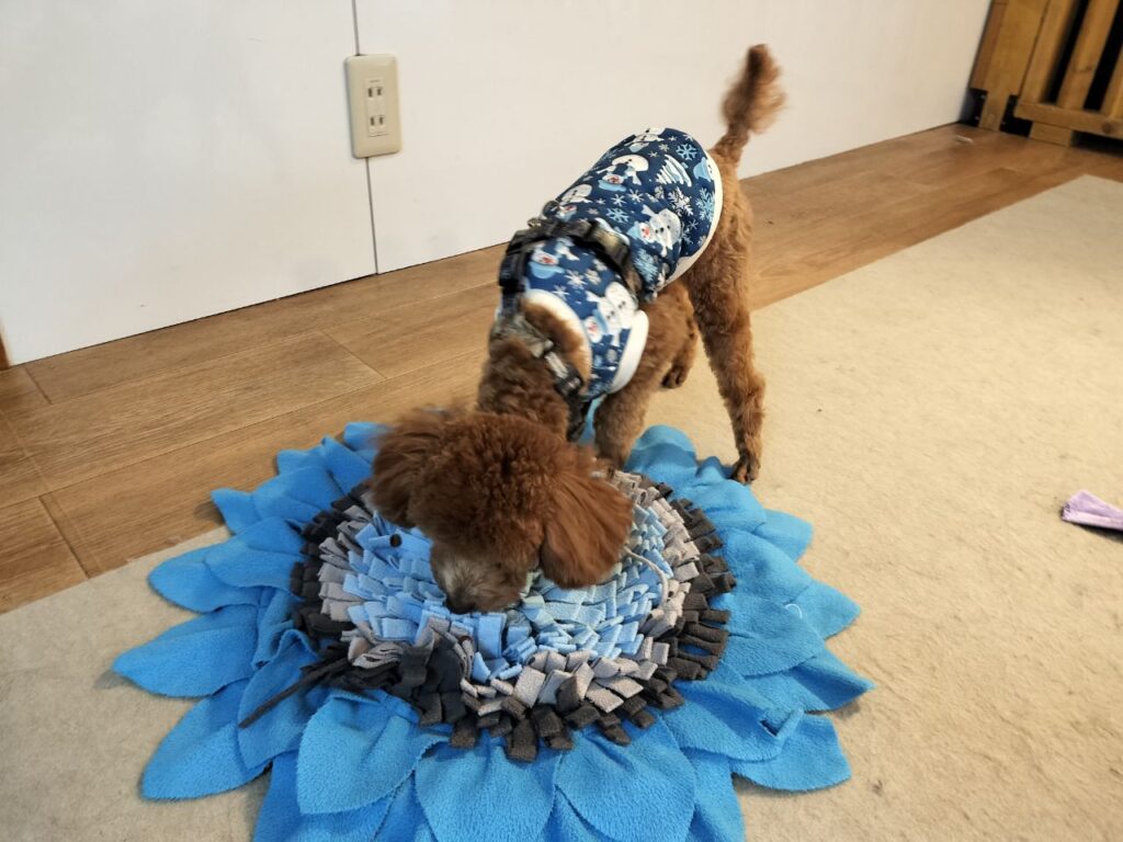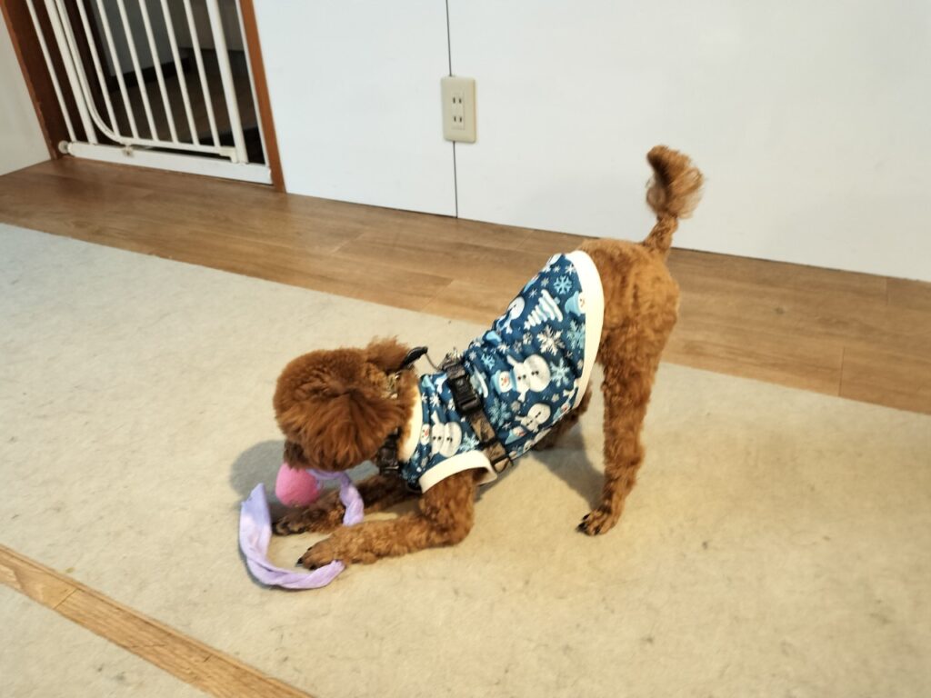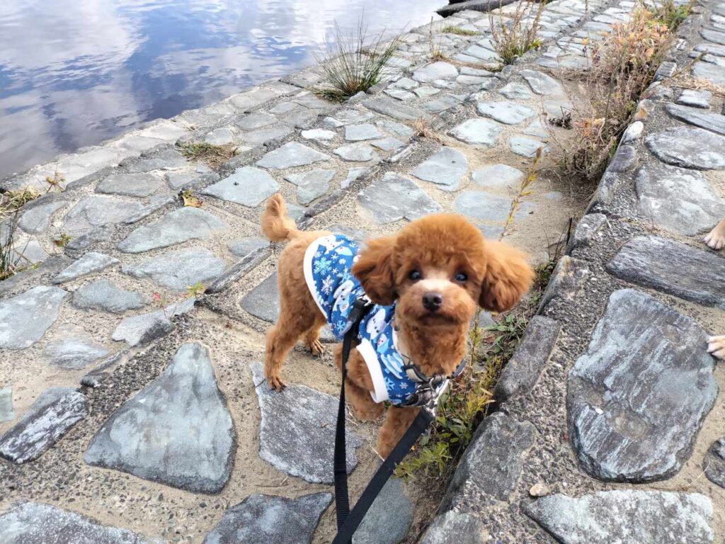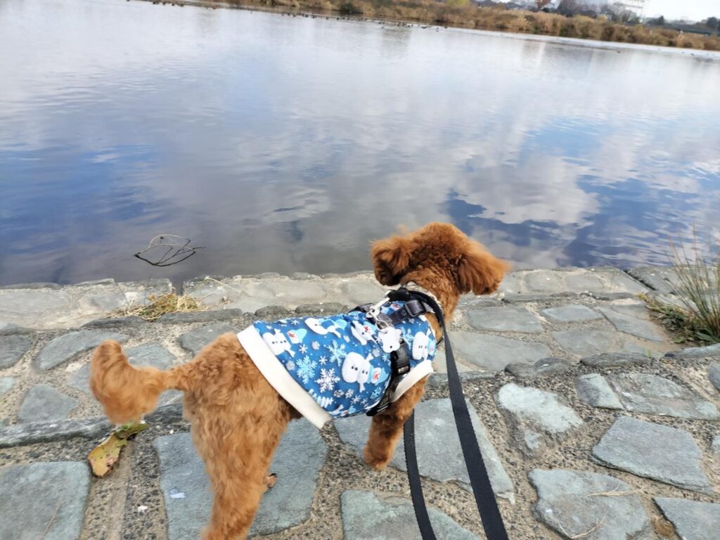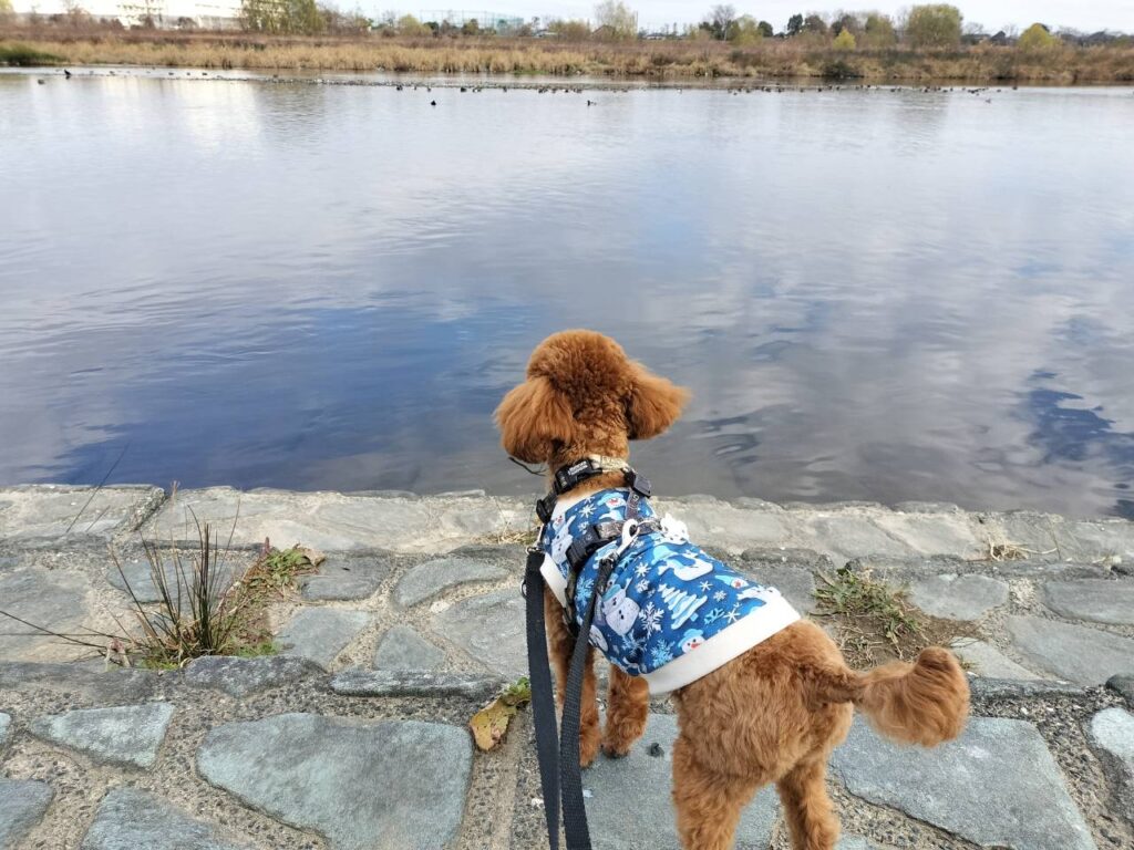 犬の保育園BLOG 2025.12.19 朝は雲が多く寒かったのですが、午前中になると日が差すようになってきました、多摩市の予想最高気温は12度!この時期らしい気温ですね♪風がないのでお散歩しやすいです。 今日の保育園は、トイプードルのりく君♪ 多摩川までお散歩に行きました♪ 渡り鳥がたくさんきているのが気になるようでした♪ ノーズワークフードサーチをしました♪