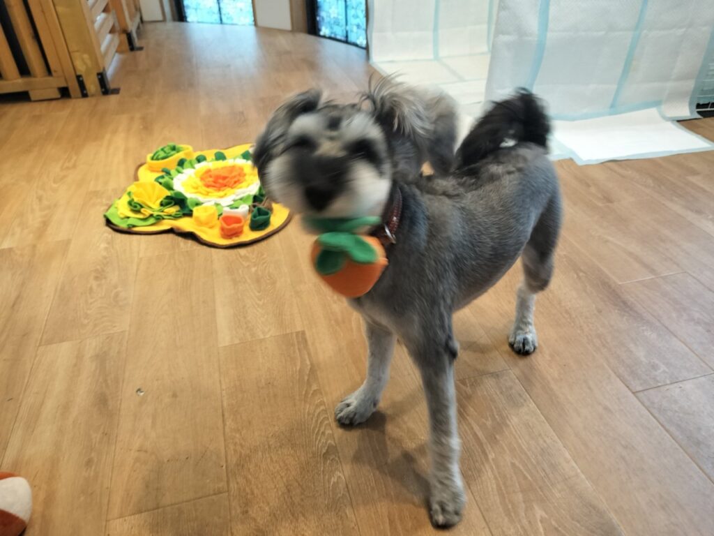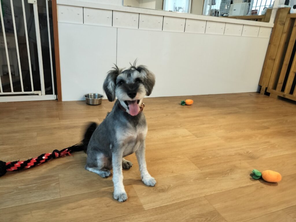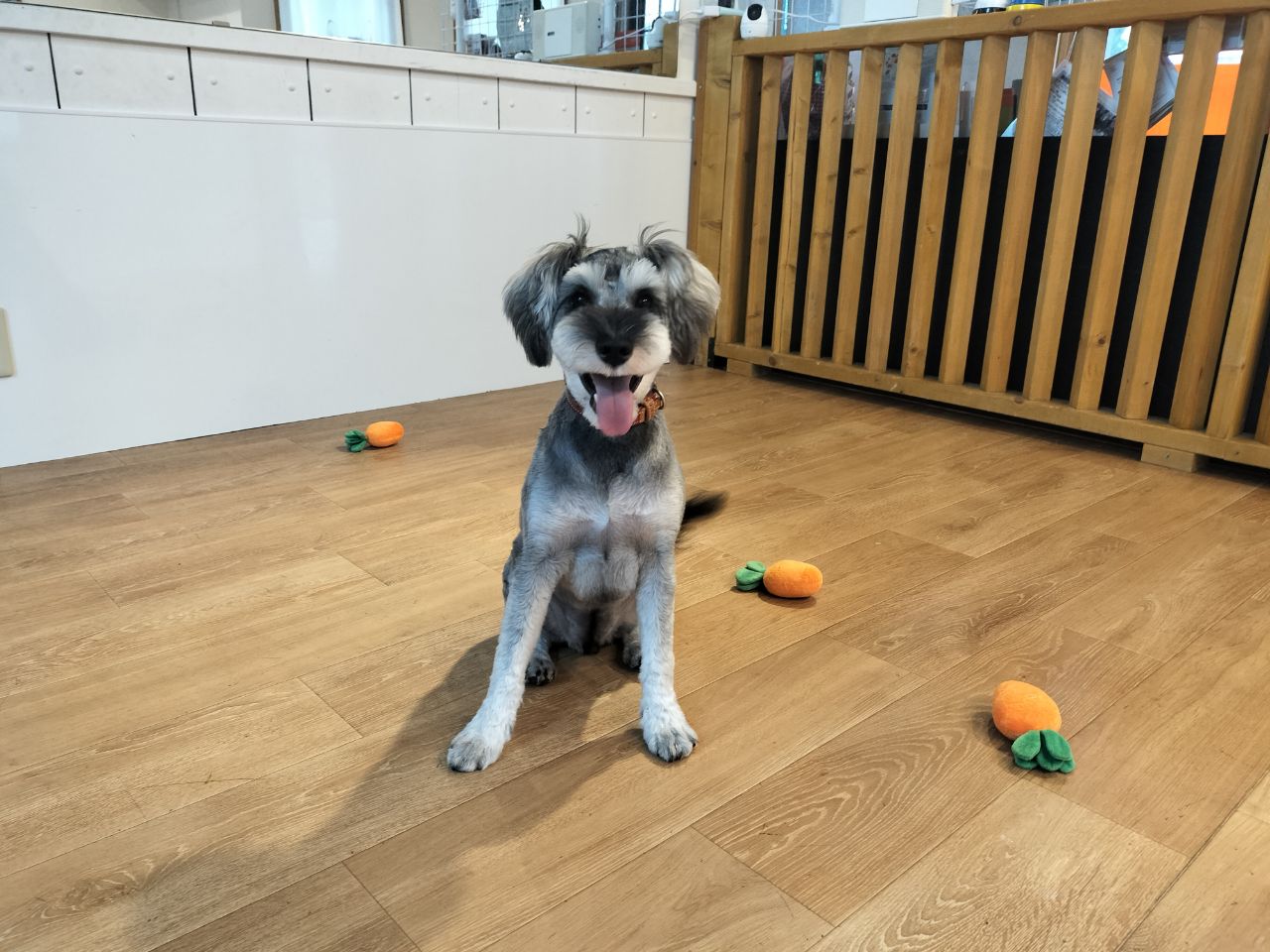Mシュナウザーのもん太君♪ 犬の保育園BLOG 2025.10.16 今日も曇りのち雨の予報、多摩市の予想最高気温は21度!昨日と同じようなお天気です。湿度あるので動いていると少し暑いです(;^_^A 午前中、雨が上がっている時にお散歩に行きました♪ 気になる物や音がすると止まってしまうか吠えてしまいます(;^_^A 良い経験を増やして「外に出ると色々な事があるのが普通なんだ」という事が分かればいいかなと思います(^^♪